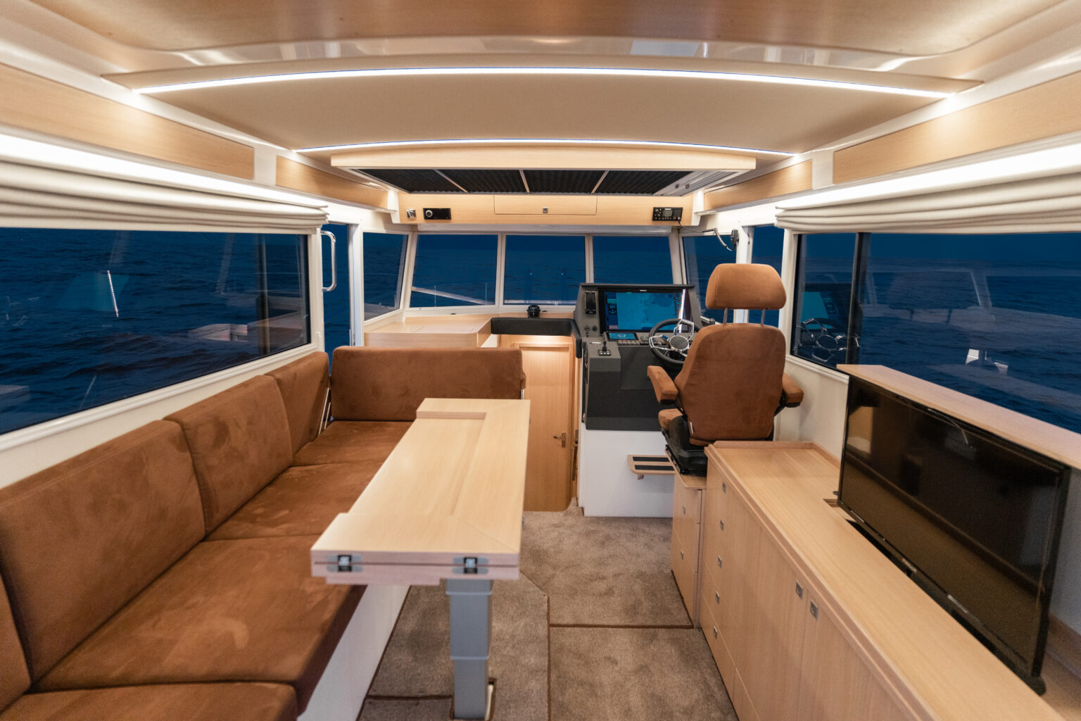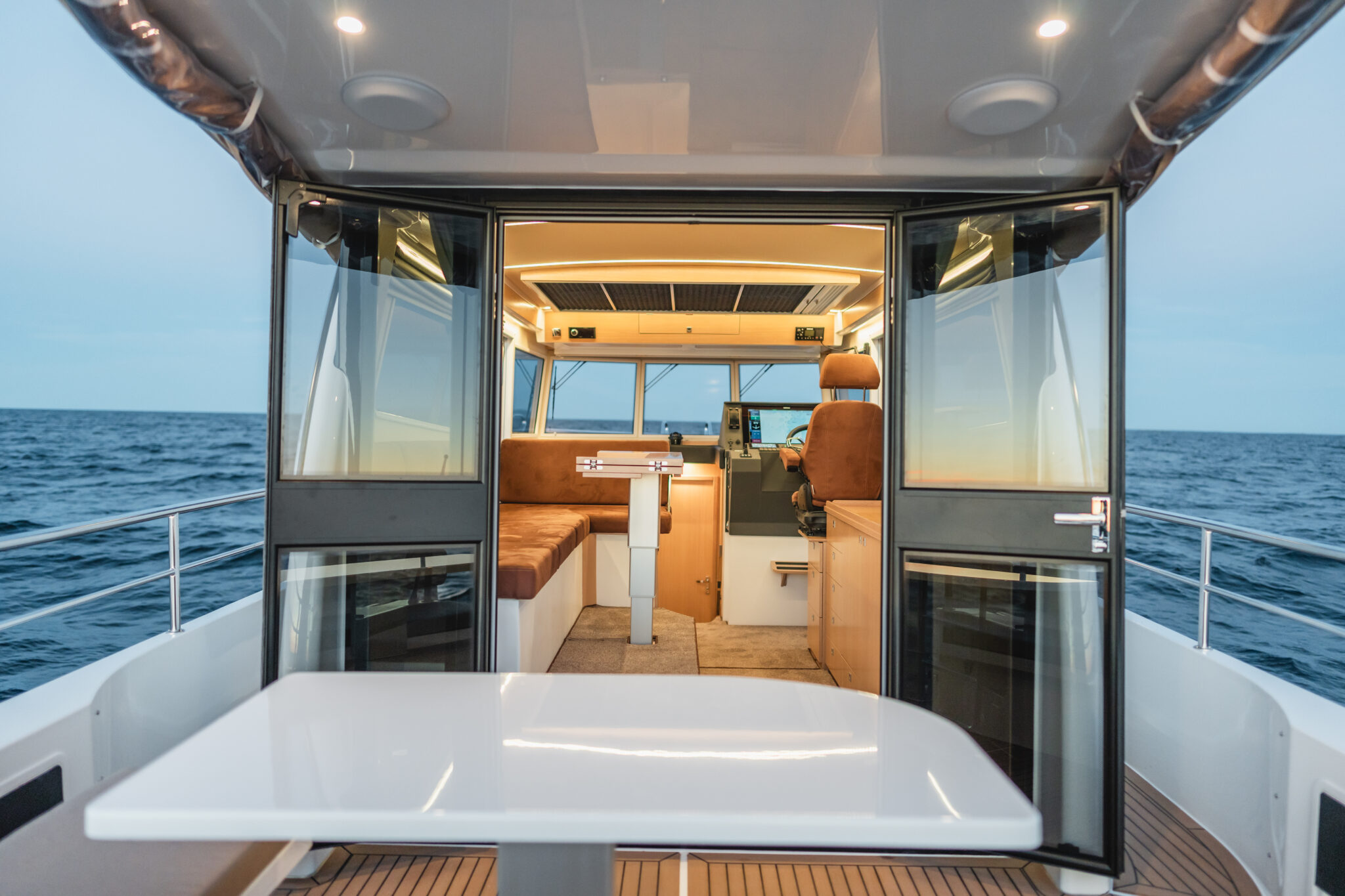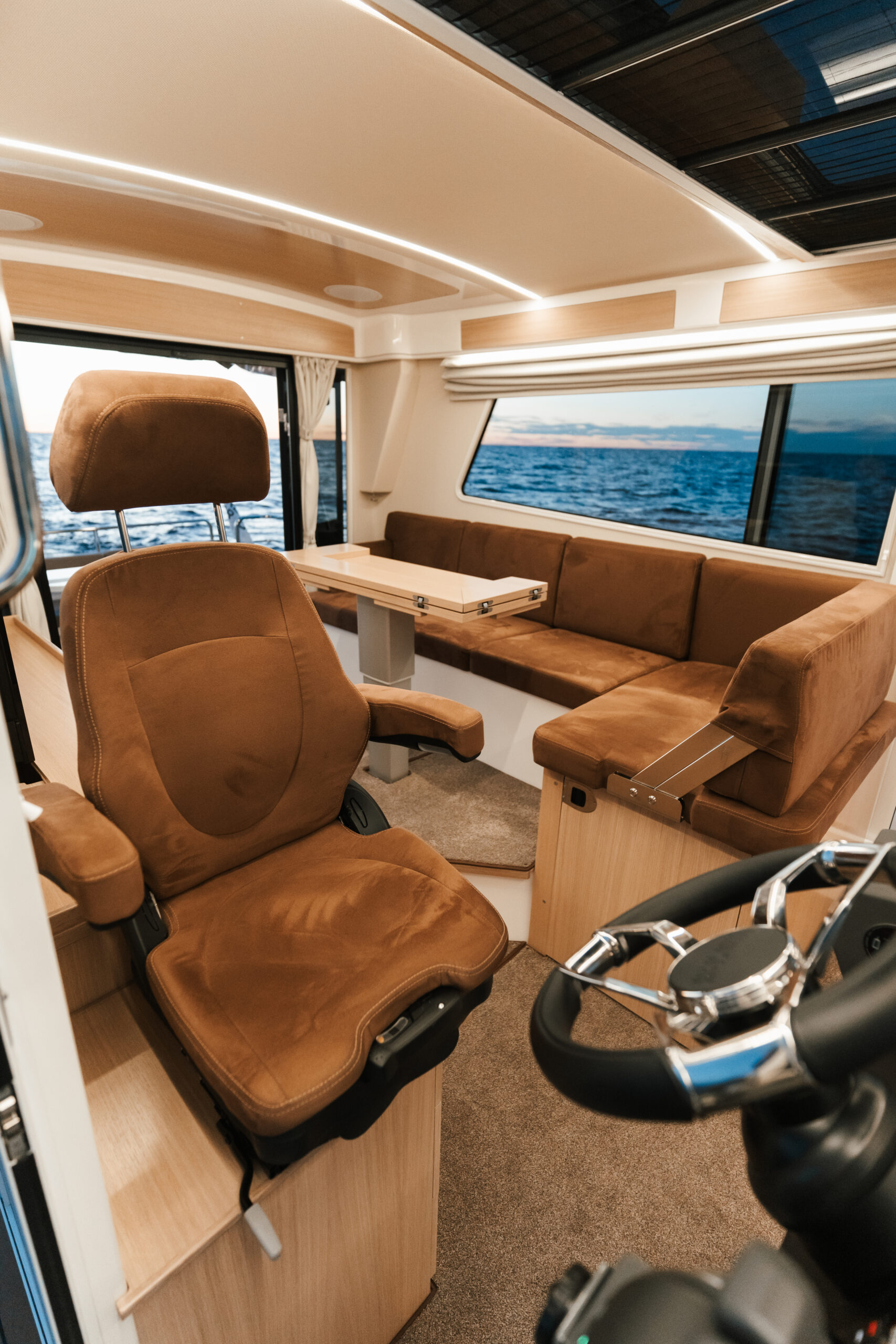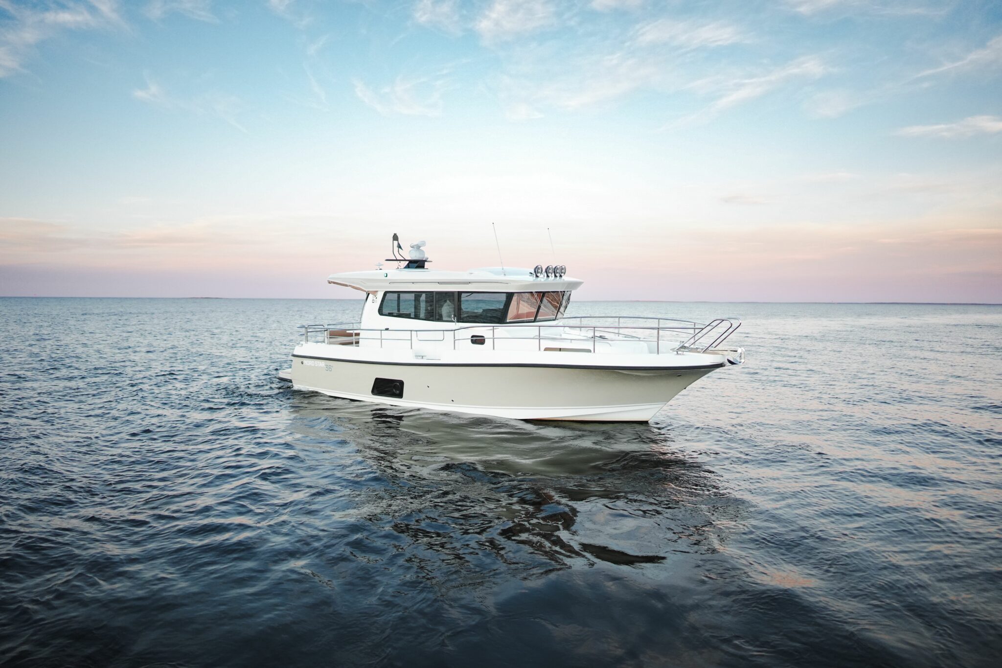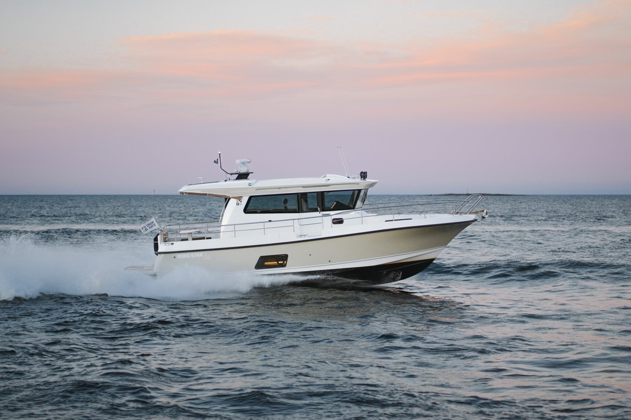 Nord Star 36+ er den perfekte kombinasjonen av et rått og funksjonsbasert eksteriør med et eksklusivt og innbydende interiør. Interiøret utstråler moderne, skandinavisk design. En stor og romslig flybridge gjør denne båten til den perfekte transportbåt under de tøffeste forhold eller som feriebåt i strålende sol.